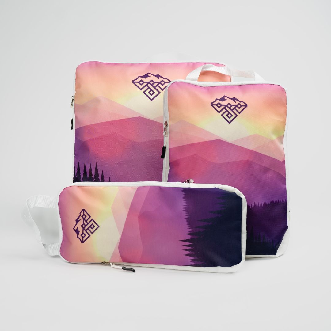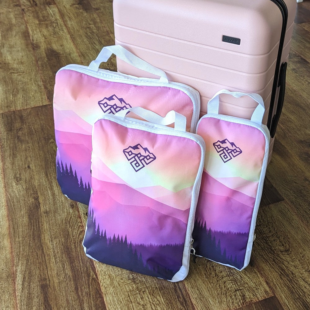 Organise your adventures with this set of packing cubes. Featuring the dusk purple design. Load up your gear and use the second zip to compress the cube so you save valuable space when packing for your next adventure.