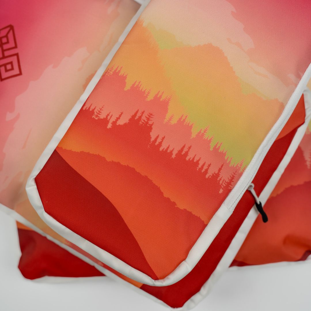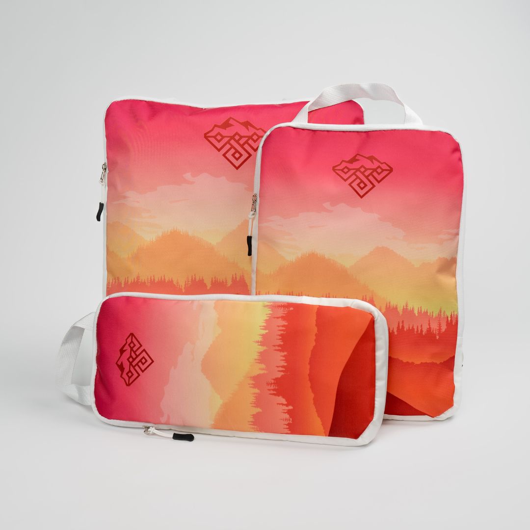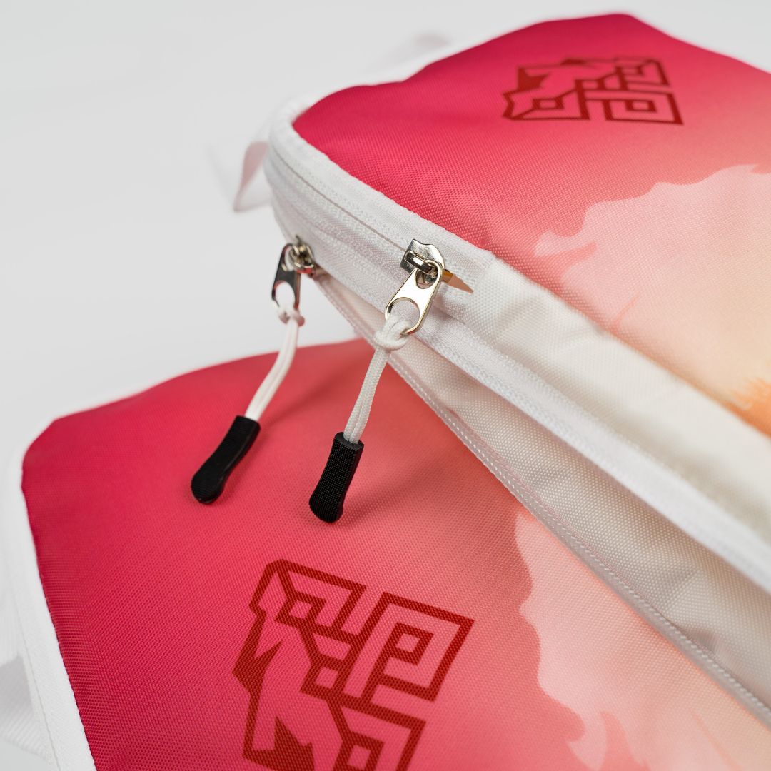 Organise your adventures with this set of packing cubes. Featuring the sunrise pink design. Load up your gear and use the second zip to compress the cube so you save valuable space when packing for your next adventure.